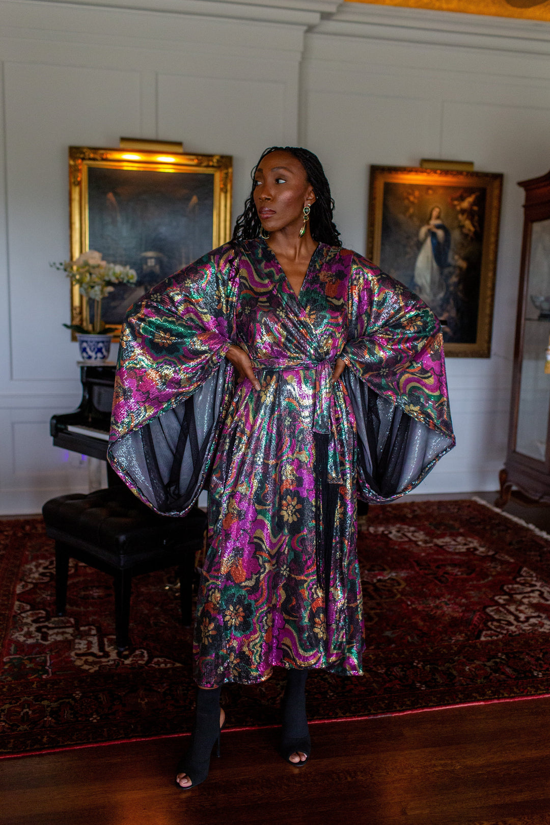 Kimono Draped Braids Cover Up Slit Maxi Dress