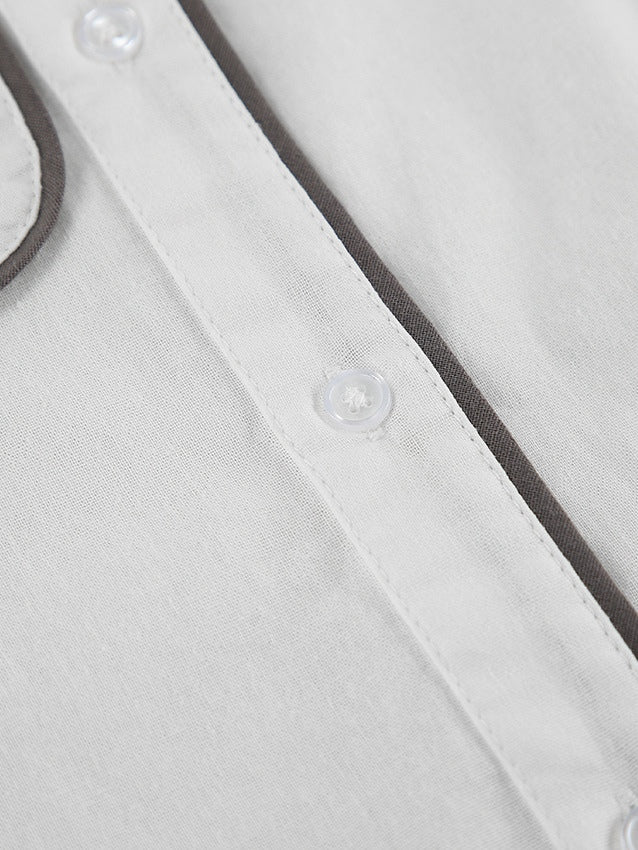 Black an White Contrast Cotton and Linen Shirt and Shorts Two-piece Se