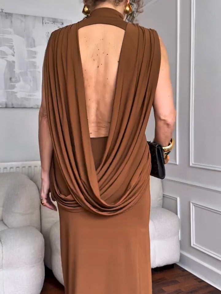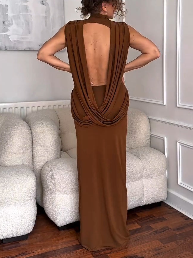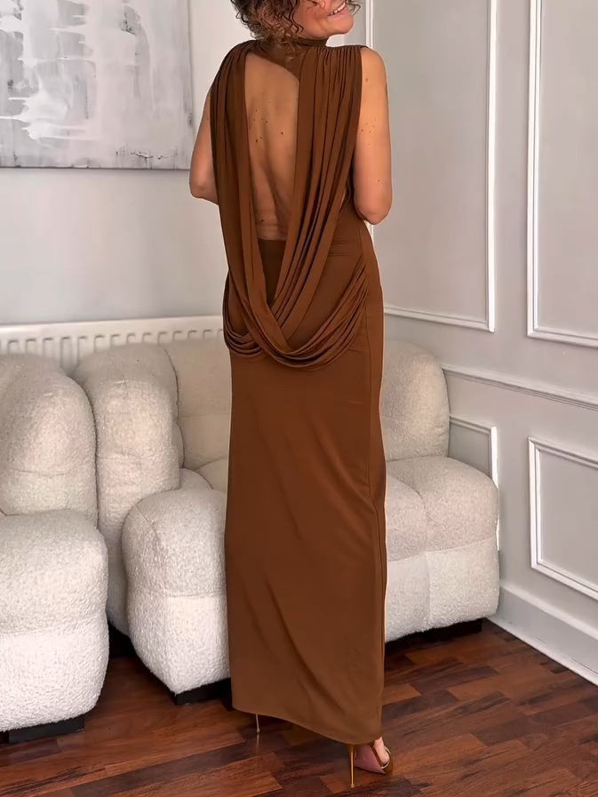 Brown High-neck Backless Sleeveless Slim-fit Maxi Dress – SerenaCHIC