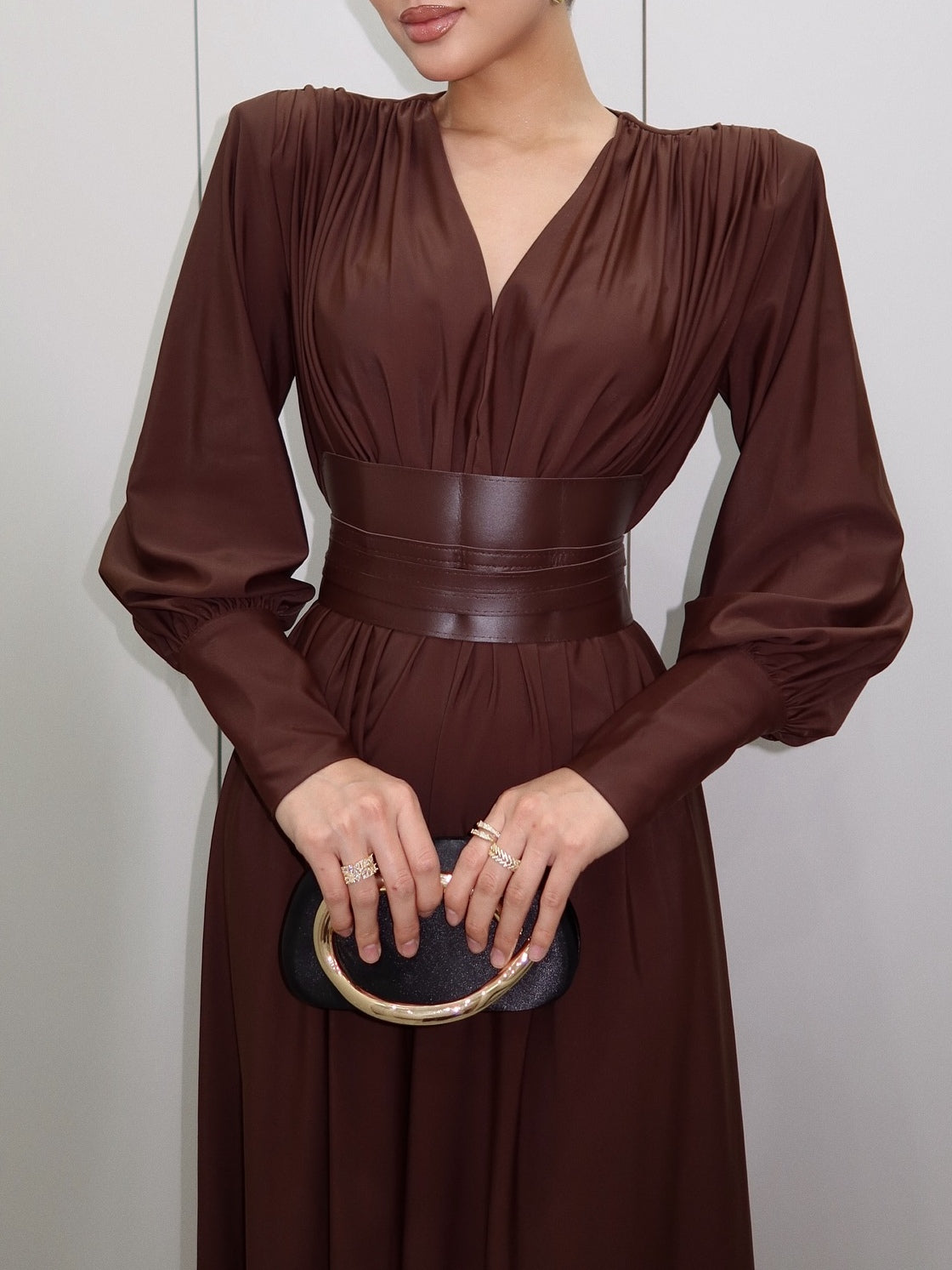 Brown Lantern Sleeve Tunic Maxi Dress – SerenaCHIC