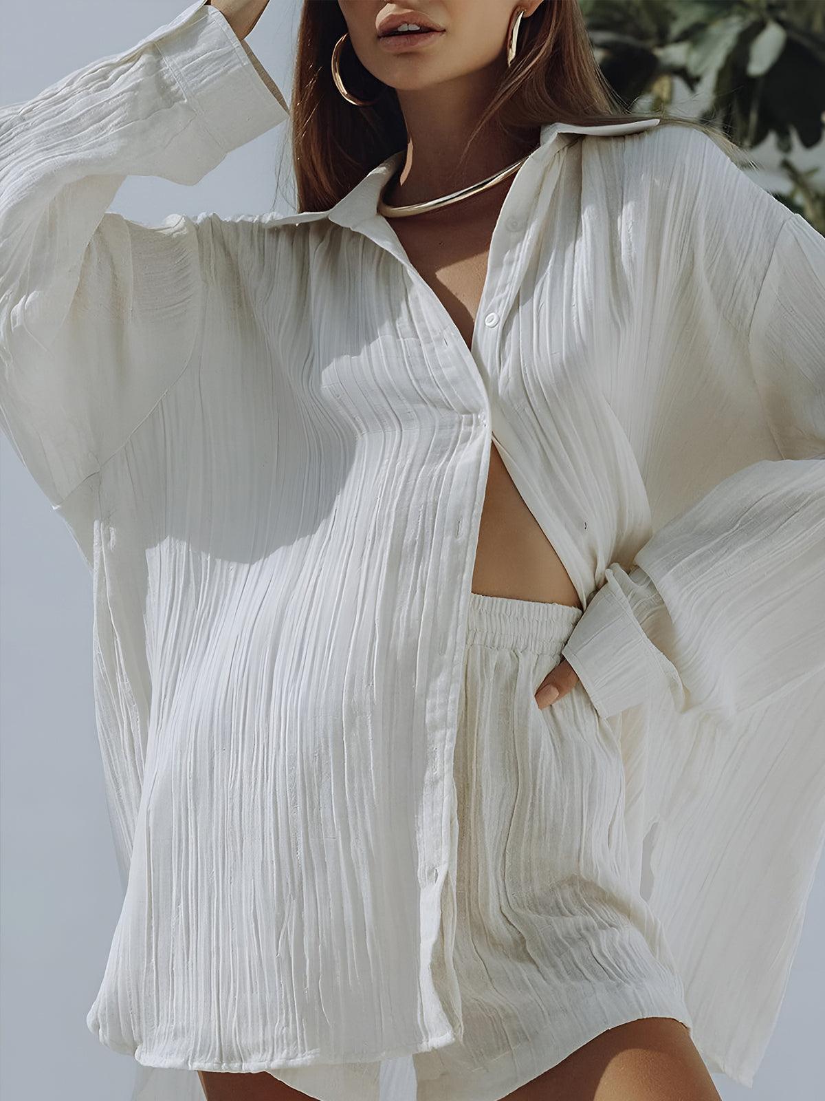 Cotton Blends Pockets Drawstring Shorts Set – SerenaCHIC